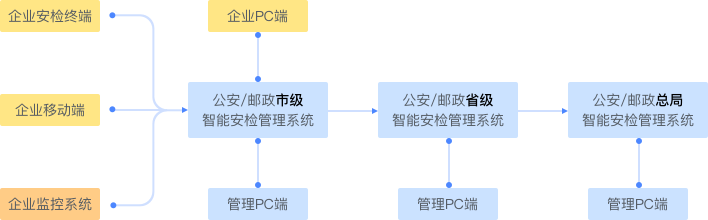 Centrally store and manage the security check data in the background, query and trace historical security data according to multi-dimensional, make multi-dimensionality analysis and report statist of enterprise, security equipment, security inspection results according to security data stored in the network system.